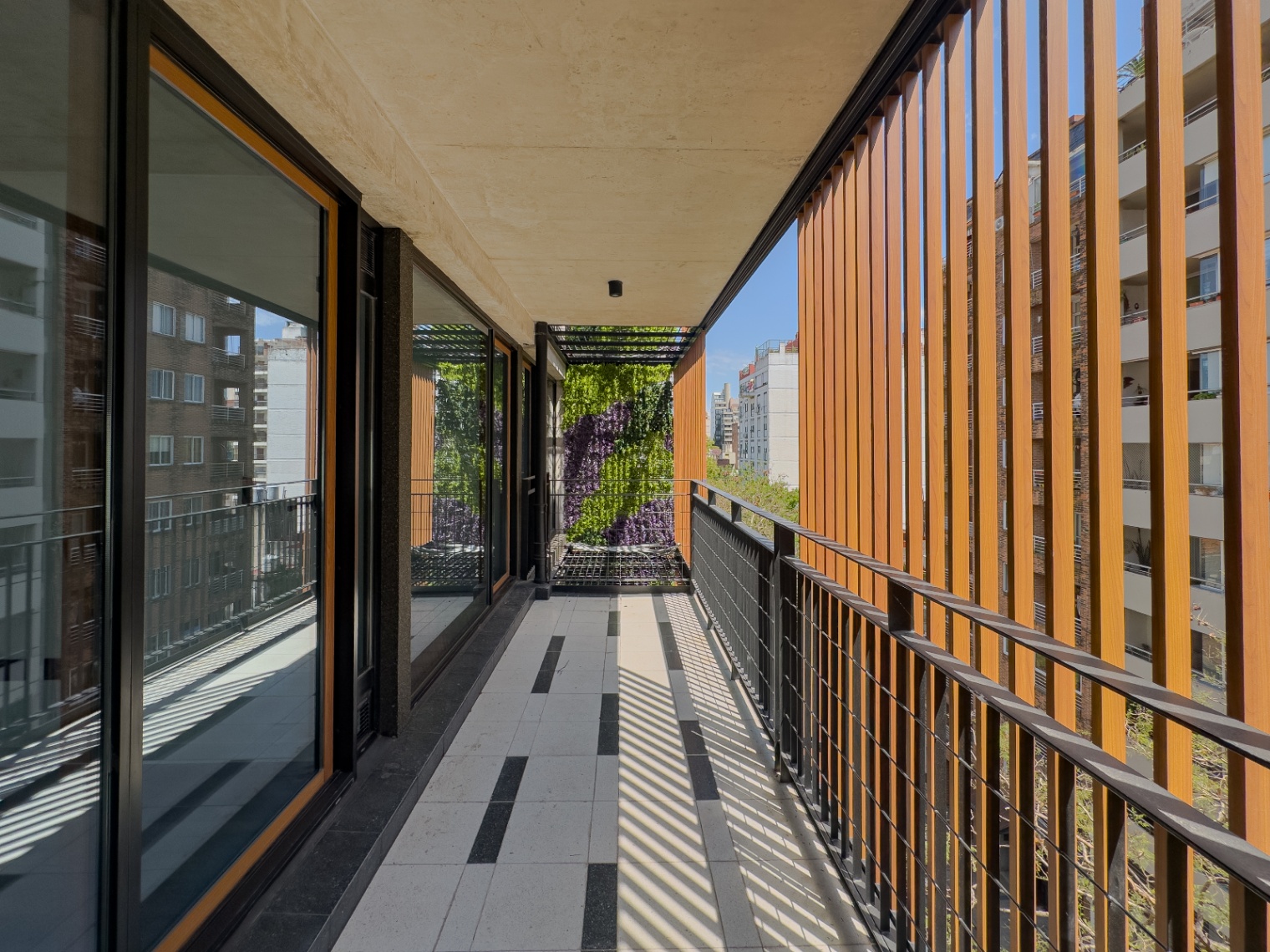 * Balcones: Baranda metálica pintada al frente contrafrente. Para vista en madera al frente y chapa microperforada al contafrente.