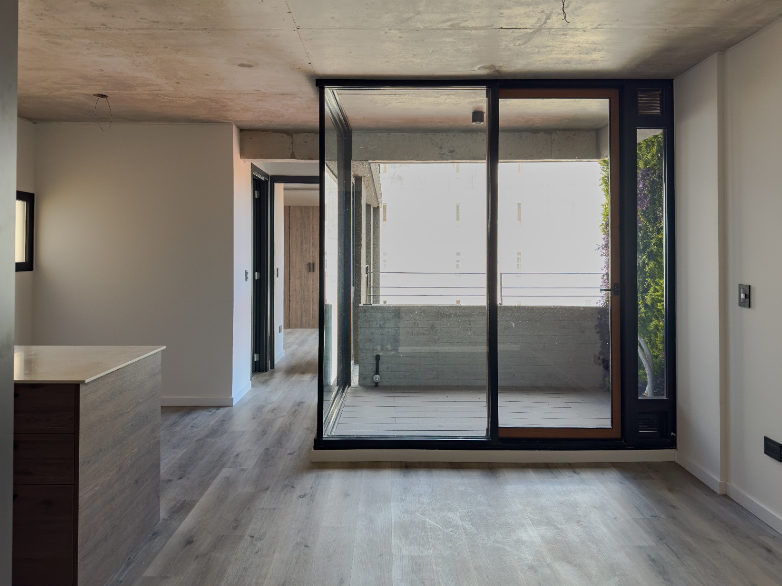 * Techo: Losa hormigón en balcones. Yeso aplicado en estar-comedor y dormitorios,